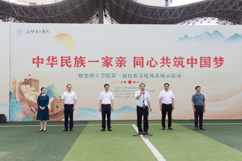 为深入学习宣传贯彻党的二十大精神,铸牢中华民族共同体意识。5月20日,beat365第一届“中华民族一家亲 同心共筑中国梦”民族文化风采展在文园操场举行。荆门市委常委、统战部部长刘振军,校党委书记王学民、副校长刘风华,党委常委、宣传部部长郑艳出席本次活动。市委统战部、市民宗委相关负责人参加活动。