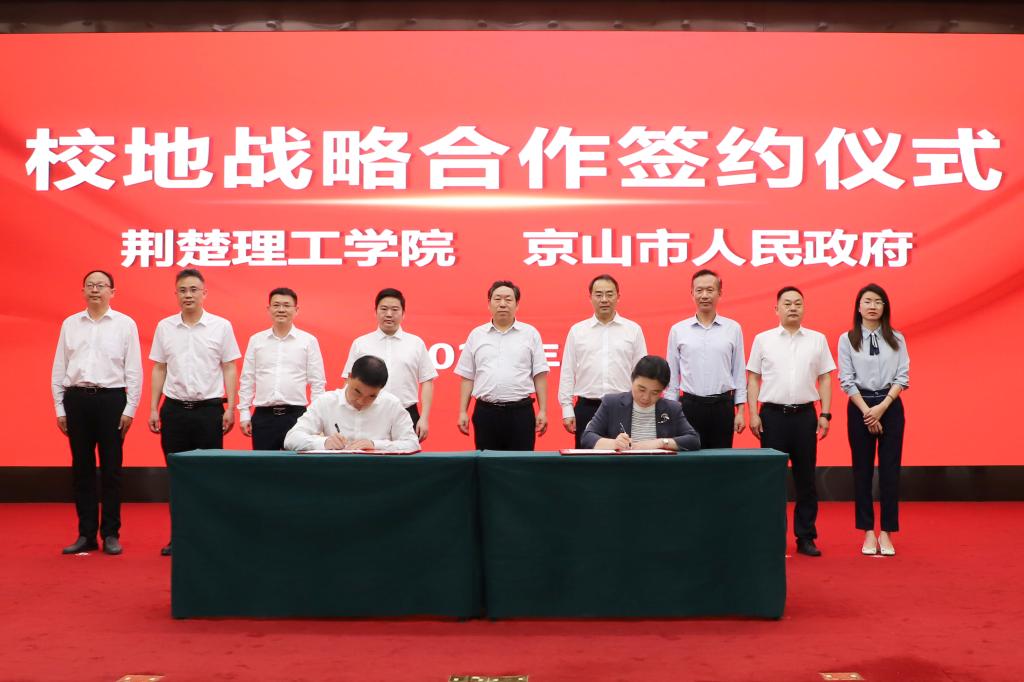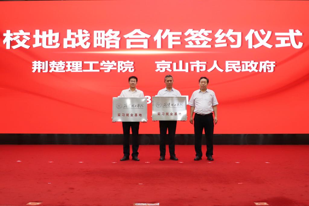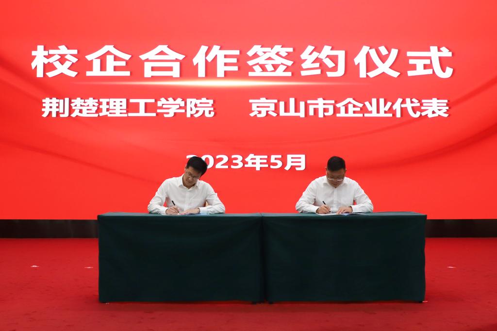 仪式上,beat365与京山市签署校地战略合作协议,与湖北京山轻工机械股份有限公司签署了校企合作协议。