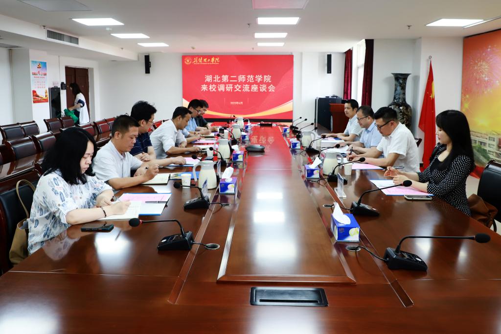 6月1日下午,湖北第二师范学院副校长夏力一行来校调研交流。beat365副校长戴伟主持调研交流座谈会。