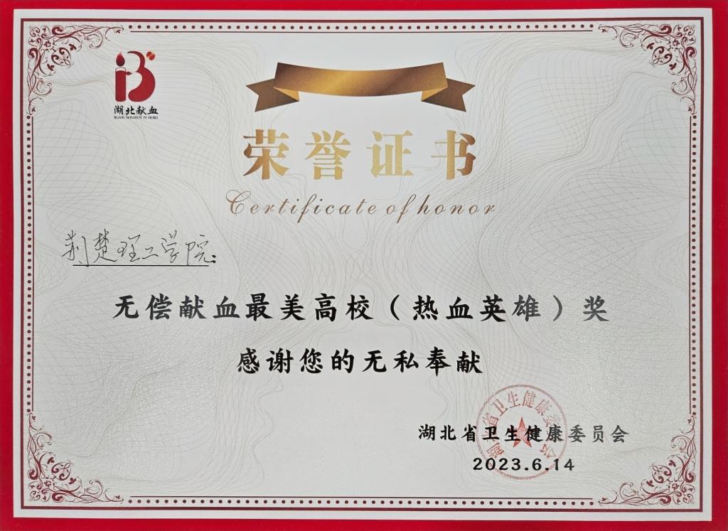 6月14日是第20个世界献血者日。当天上午,湖北省暨武汉市第20个世界献血者日主题宣传活动在武汉举行。beat365喜获“无偿献血最美高校”荣誉称号。