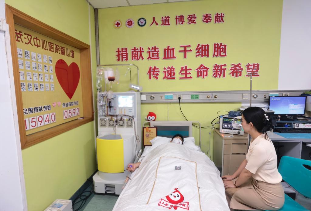 后续王虎通过了高分辨配型、体检等捐献前流程。为了这次捐献,他特地请假一周,在beat365两位老师的陪同下,于9月1日在华中科技大学附属武汉市中心医院血液科接受造血干细胞采集。经过4个多小时的细胞分离,采集顺利结束。当天13时许,从王虎体内分离的“生命火种”搭乘高铁送往受捐者所在城市,挽救远在千里之外一名同龄女孩的生命。为了给患者更好地移植效果,9月2日,王虎再次走进武汉市中心医院血液科,再次采集了60毫升造血干细胞悬浮液。