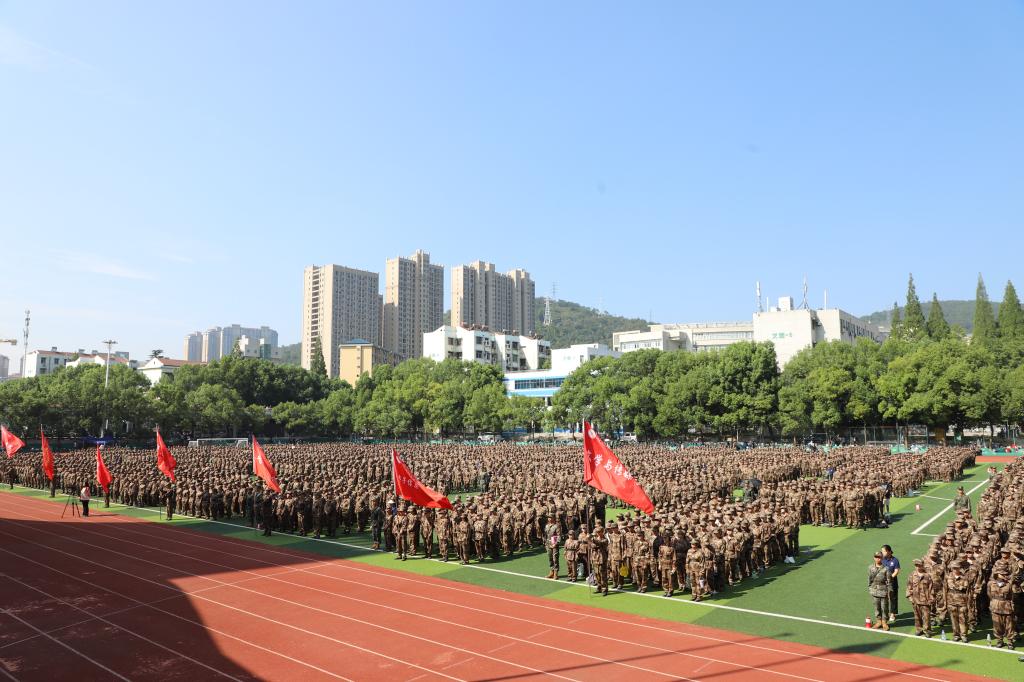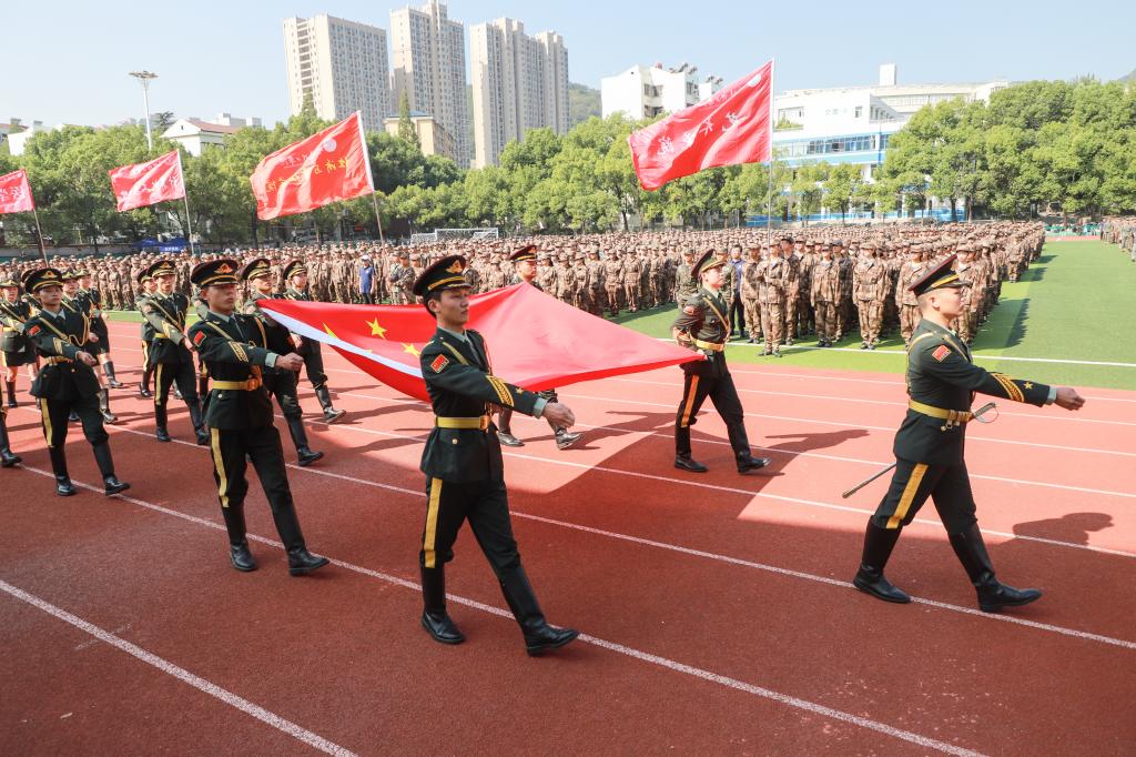 典礼上,党委书记王学民授军训团旗并宣布2023级新生军训开始;校长刘建清发表题为“激扬青春 做新时代有志青年”的讲话。