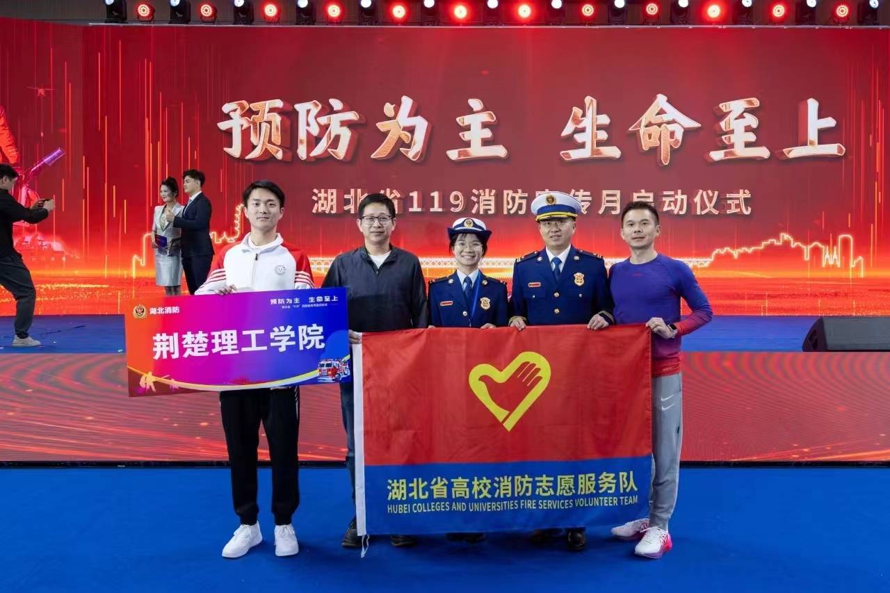 活动中,与会领导为“湖北省十佳高校消防志愿者服务队”授旗。beat365获评“湖北省十佳高校消防志愿者服务队”荣誉称号并接受授旗。