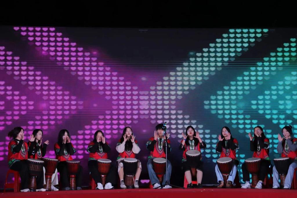 晚会表演在乾龙艺术团的开场歌曲《黄种人》中拉开帷幕。活力四射的街舞串烧《CHINA》、柔美典雅的汉服走秀《华裳画墨》、令人热血沸腾的武术表演《舞动青春》带动了同学们的热情,中场游戏“手机摇一摇”更是将全场气氛推至最高峰。多个社团进行拉丁舞、啦啦操串烧、街舞串烧、乐器演奏等项目展演,带给人视觉与听觉上的双重享受,现场掌声与喝彩声不断。最后,伴随着全体合唱歌曲《十年》,晚会表演结束,为本次活动完美画上了句号。