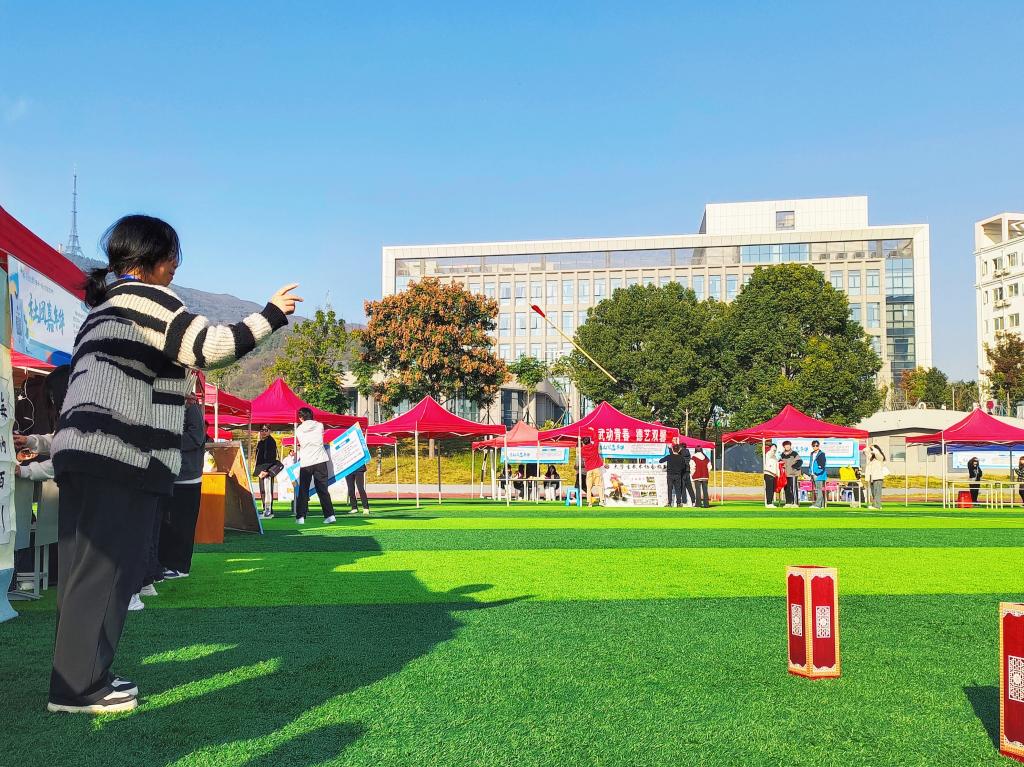 社团展示活动现场人潮涌动,热闹非凡。各社团结合自身特点,以宣传展板、优秀作品展示、文艺演出、现场体验等形式宣传社团文化,青春飞扬的舞蹈,精妙绝伦的投壶,宛转悠扬的歌声,无不彰显着此次活动的热烈。同学们在活动中积极参与互动体验小游戏,了解各学生社团的特色文化,根据自身的兴趣爱好,积极向各社团咨询报名并选择加入了自己喜欢的社团,为校园文化注入了新的活力。