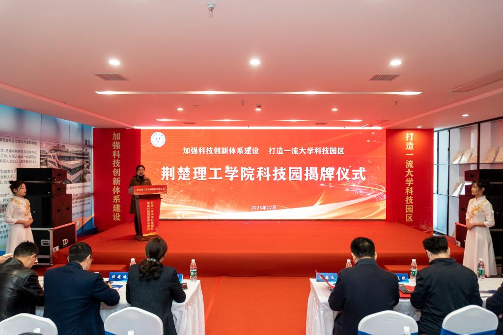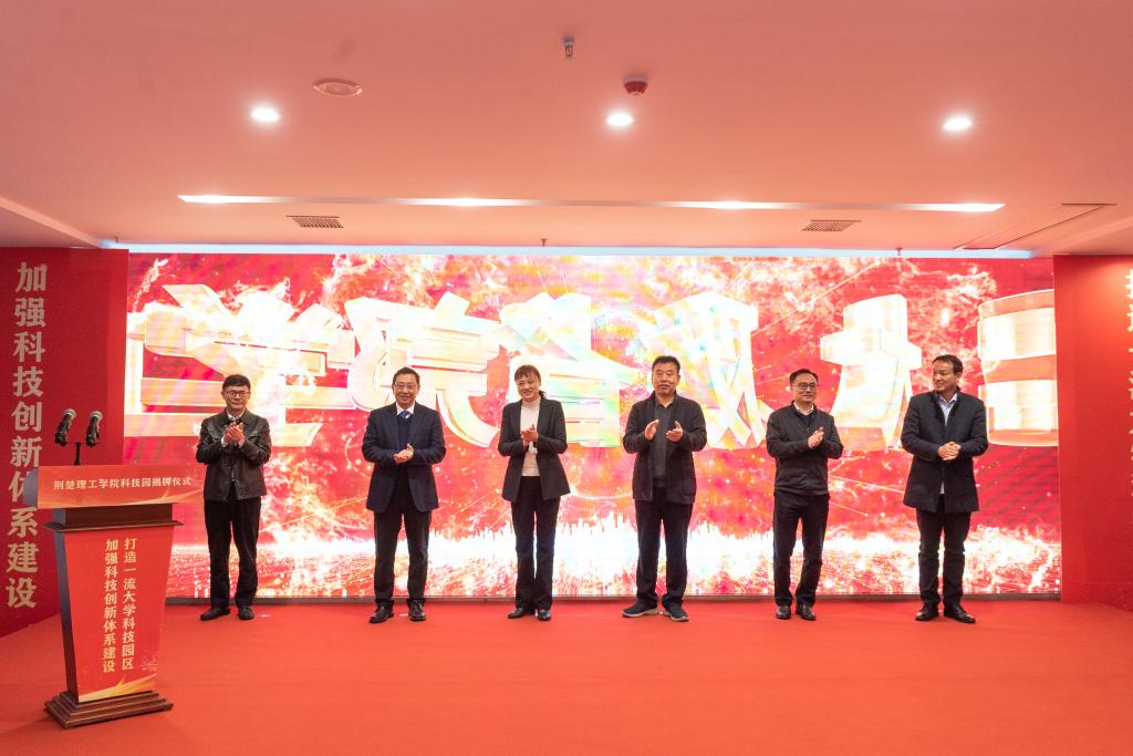 12月8日,beat365官方网站省级大学科技园揭牌仪式在科技园荆楚科创城园区举行。荆门市人民政府副市长唐承凤,省科技厅成果转化与区域创新处二级调研员刘春生,beat365官方网站校长刘建清、副校长戴伟,荆门市科技局局长王展欧,荆门市经济和信息化局局长赵冬安共同为beat365官方网站省级大学科技园揭牌启幕。仪式由副校长曹甜东主持。