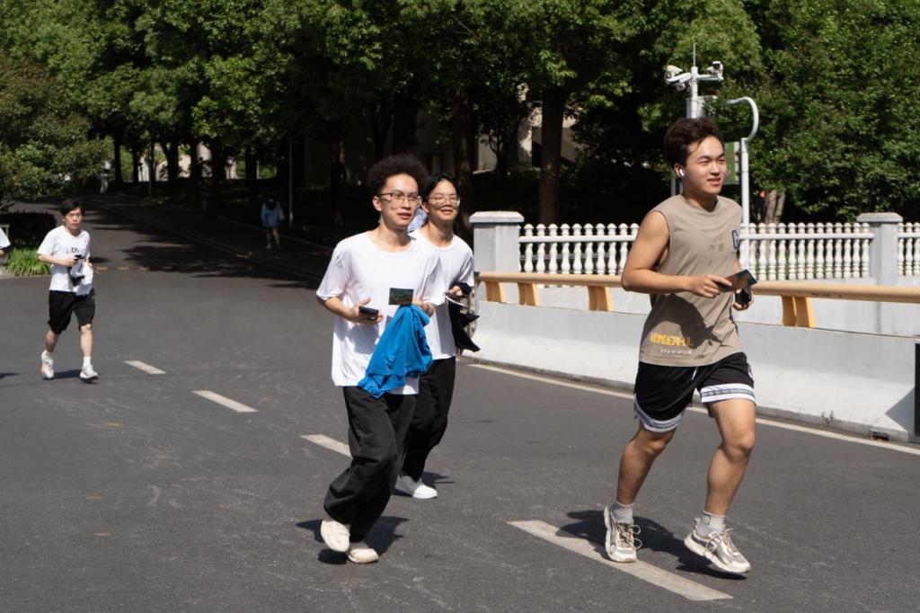 竞赛组选手们如同离弦之箭,矫健地穿梭在校园的各个角落,他们互相激励,一路奋勇向前,向着终点线发起冲刺。趣味组的选手们则在轻松愉悦的氛围中,通过回答关于诚信和资助育人问答,不断积累印章,最终迈向胜利的终点。