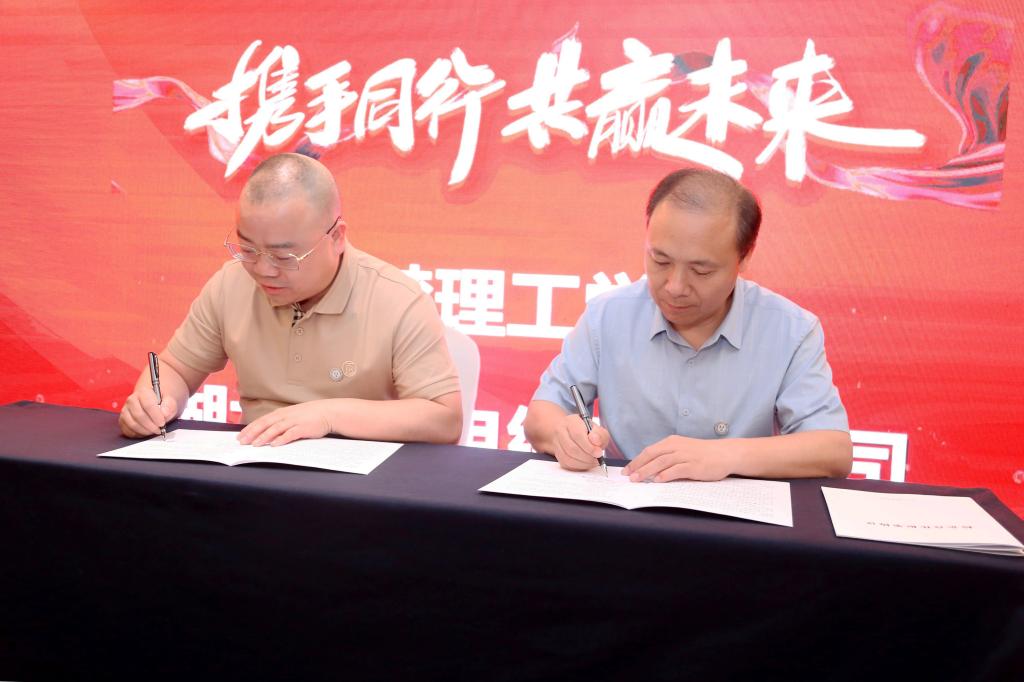 会上举行了教育实践基地、毕业生就业基地授牌和校企合作签约仪式。刘建清、刘风华为校友企业授牌。科技处负责人代表学校分别与校友企业北京智汇云舟科技有限公司、湖北艾克电缆有限公司、荆门市绿食苑农业科技有限公司签订《校企合作框架协议》。