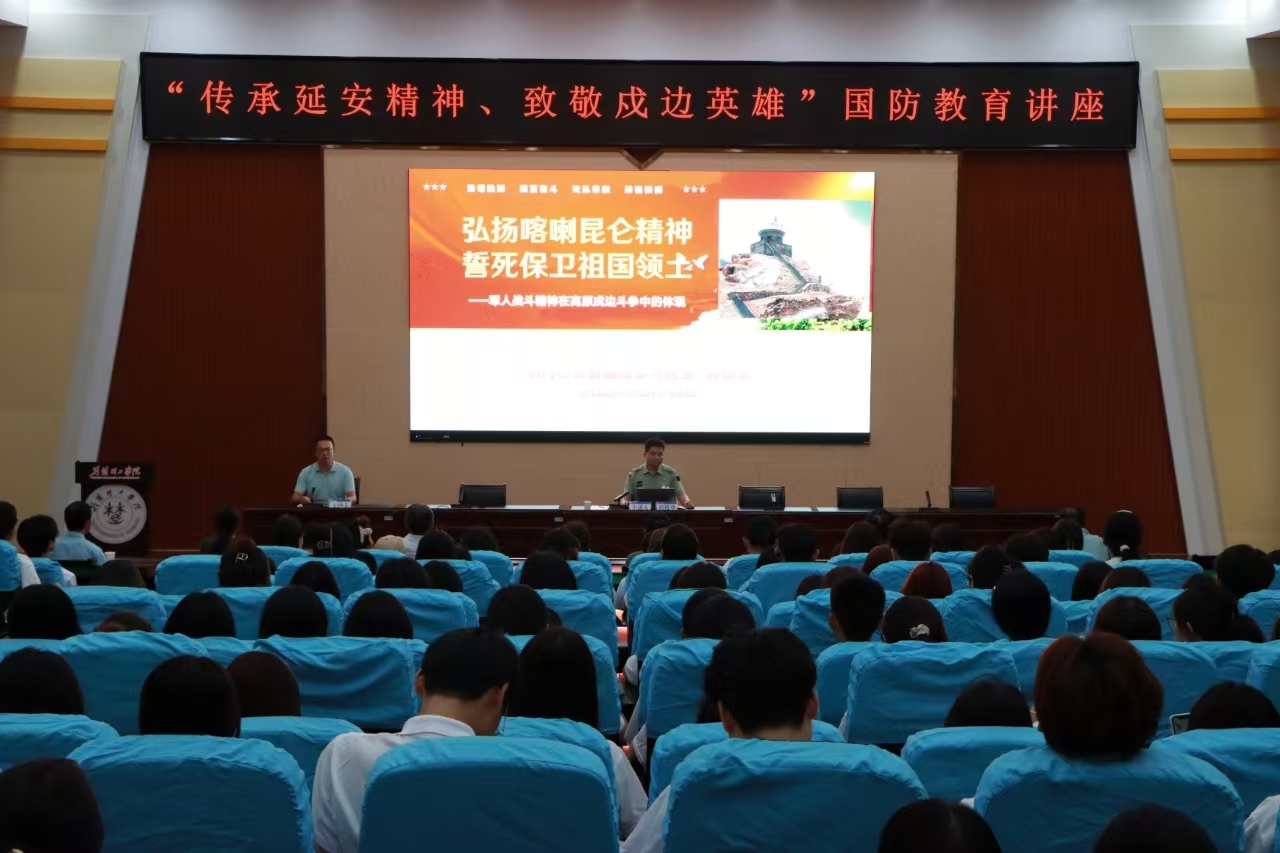 9月14日下午,beat365联合荆门市退役军人事务局、荆门市延安精神研究会、荆门市关爱退役军人协会在学术报告厅C201举办“传承延安精神 致敬戍边英雄”国防教育讲座。近300名学生参加宣讲活动。