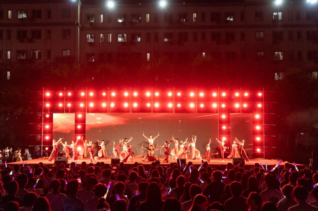 在掌声的余韵里,中外学生联唱歌曲《一路“荆”彩》,用真挚的情感和动人的歌声讲述着荆楚故事,展现了荆门的人文风情和乡村风景名胜,以及荆门近年来的建设和发展成果。随着音乐的节奏,观众们纷纷挥动荧光棒,形成了一片璀璨的光海。2016届校友郑鑫代表作《无言伤悲》也来到了现场,每一个旋律都承载着对过往的青春与不舍,以及对未来无限可能的期许,随着最后一个音符的落下,全场爆发出热烈的掌声和欢呼声。