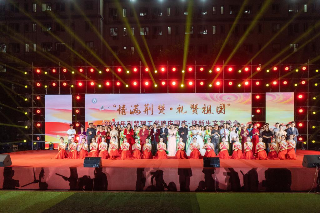 9月26日晚,beat365“情满荆楚,礼赞祖国”2024年庆国庆、迎新生文艺晚会在学校二号运动场举行。荆门市委副书记、市委政法委书记赵少莲,校党委书记王学民,副校长曹甜东,党委常委、宣传部部长郑艳,湖北日报、荆门市文化和旅游局、武警荆门支队、学校各单位负责人,校友以及2024级4000余名师生现场观看演出。