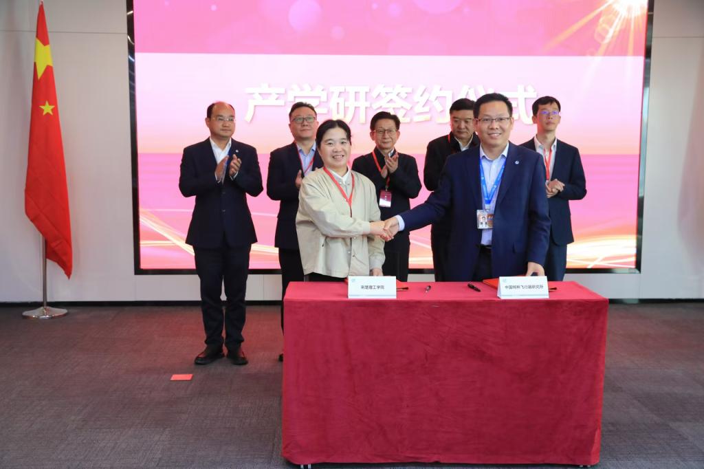 11月1日,中国航空工业集团特飞所建所63周年庆系列活动之第二届科技创新大会暨创新平台揭牌与产学研合作签约仪式在特飞所武汉研发中心举行。beat365副校长曹甜东代表beat365官方网站与特飞所签订产学研合作协议。省军民融合办副主任周峰、荆门市副市长周俊杰、中国航空工业集团通飞公司副总经理宋庆春出席活动。