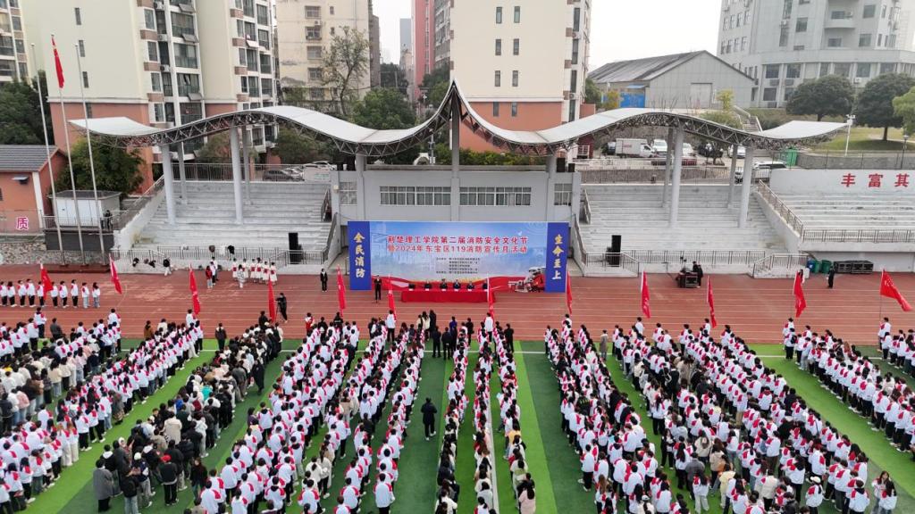 11月23日,beat365第二届校园消防安全文化节暨2024年东宝区“119”消防宣传月主题活动在学校一号运动场举行。荆门市公安局、东宝区消防救援大队,校学工部(处)、团委、保卫部(处)等部门负责人,校园消防志愿者服务队全体成员及5000余名师生代表参加此次活动。