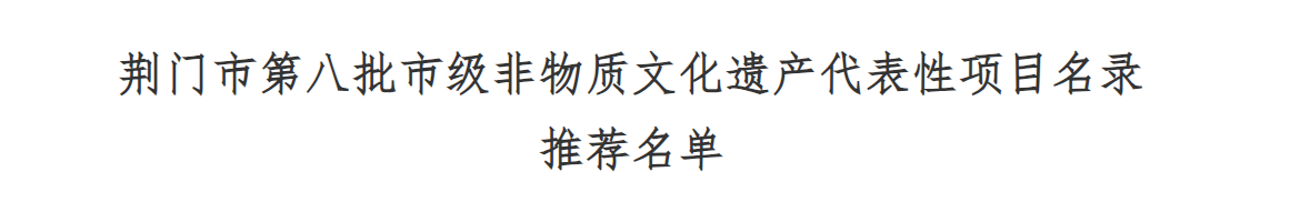 荆门非遗传统舞蹈莲湘舞文化底蕴深厚、形式内容丰富。莲湘,又称打钱鞭、九子鞭、霸王鞭、打花棍等,是我省一种传统民俗民族舞蹈,分布地域广。莲湘可考的历史悠久,历经元、明、清历代而经久不衰,是湖北省众多民间舞蹈中最为鲜艳的一朵奇葩,1983年被收进《中国民族民间舞蹈集成•湖北卷》。非遗传承人杨道美先生传授的莲湘舞蹈,目前已进入地方高校美育课程教学改革课程建设。