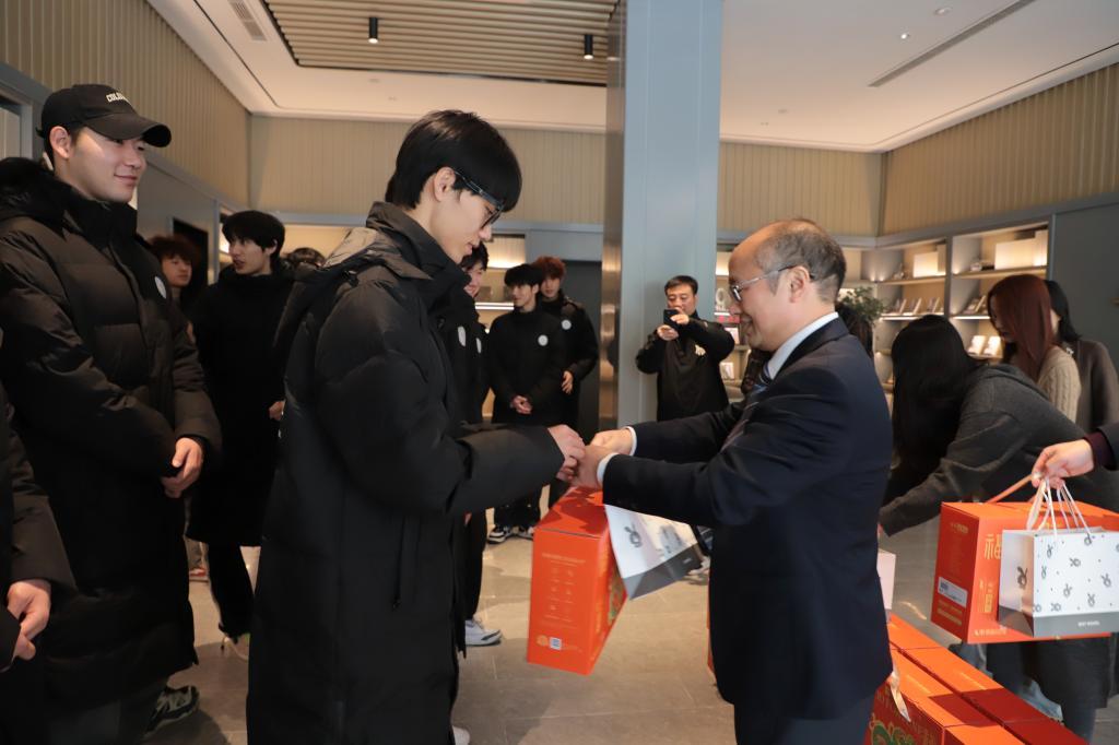 1月19日上午,校长张友兵一行前往武汉,看望慰问beat365参加2025年央视春晚武汉分会场演出的30名艺术学院舞蹈专业学生和3名带队老师,为他们送上新春的美好祝福,并发放慰问品。党委常委、宣传部部长郑艳陪同慰问。