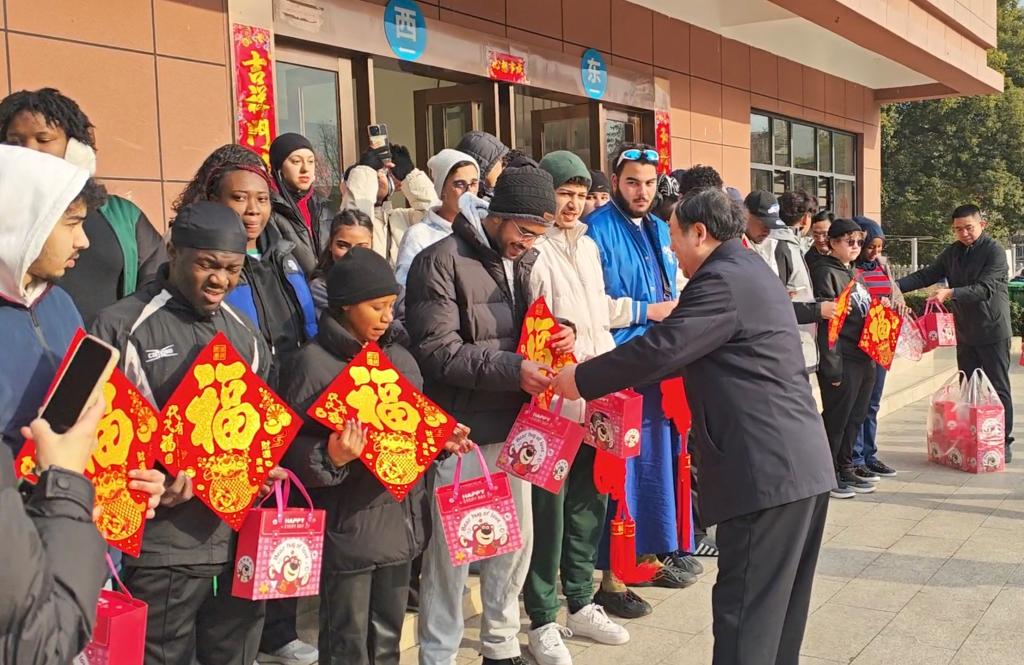 在观涧6栋,王学民一行为留学生送去新年礼包,希望他们能在校园内感受到中国春节的独特魅力,体验到家的温暖,度过一个快乐而充实的假期。同时要求相关部门要关心关爱留学生,努力为他们营造良好的学习和生活环境。留学生们纷纷表示,在这里充分感受到春节蕴含的团圆、希望等美好寓意,对中国文化有了更深的向往。