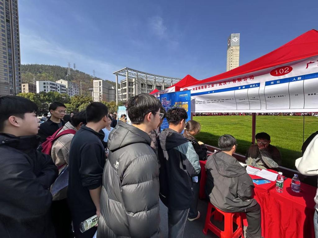 招聘会现场热闹非凡,人流如织。同学们手持简历,满怀期待地穿梭于各大企业展位之间,与招聘人员热烈交流,认真询问招聘条件、岗位职责等相关信息,展现出学生们对未来的无限憧憬与求职热情。