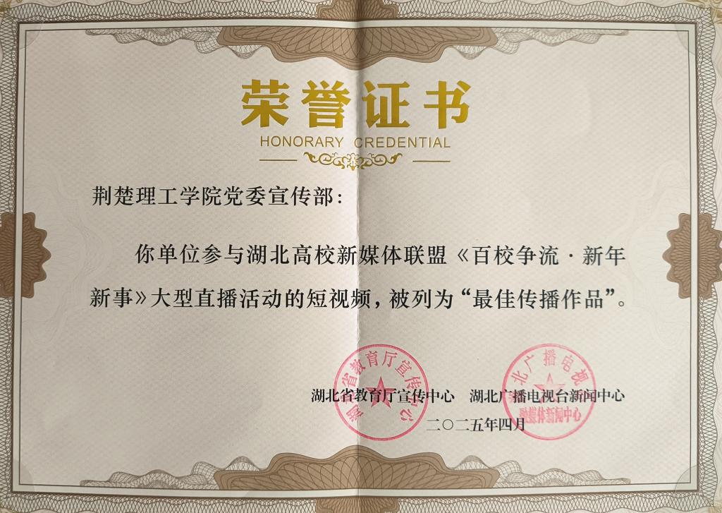 近日,湖北高校新媒体联盟《百校争流》专题研讨会在华中师范大学举行。会上对联盟主办的《百校争流・新年新事》短视频优秀作品成果评选活动进行了总结,beat365报送的短视频被列为“最佳传播作品”,主讲人龚庆红同学被列为“最佳出镜学生”。