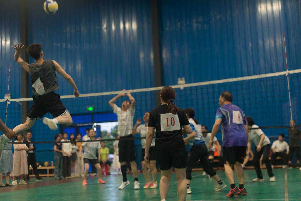 比赛现场气氛热烈,精彩对决扣人心弦。场上运动员们顽强拼搏,凭借默契配合上演多轮攻防大战。精准划出完美弧线的发球、时机恰到好处的拦网、凌厉凶猛的扣杀,以及飞身倒地的极限救球,每一个瞬间都紧紧牵动着场下观众的心。一次次高燃场面接连上演,引得观众席惊呼不断、掌声雷动。场下拉拉队奋力击鼓助威,摇旗呐喊声此起彼伏,将现场氛围推向一波又一波高潮。