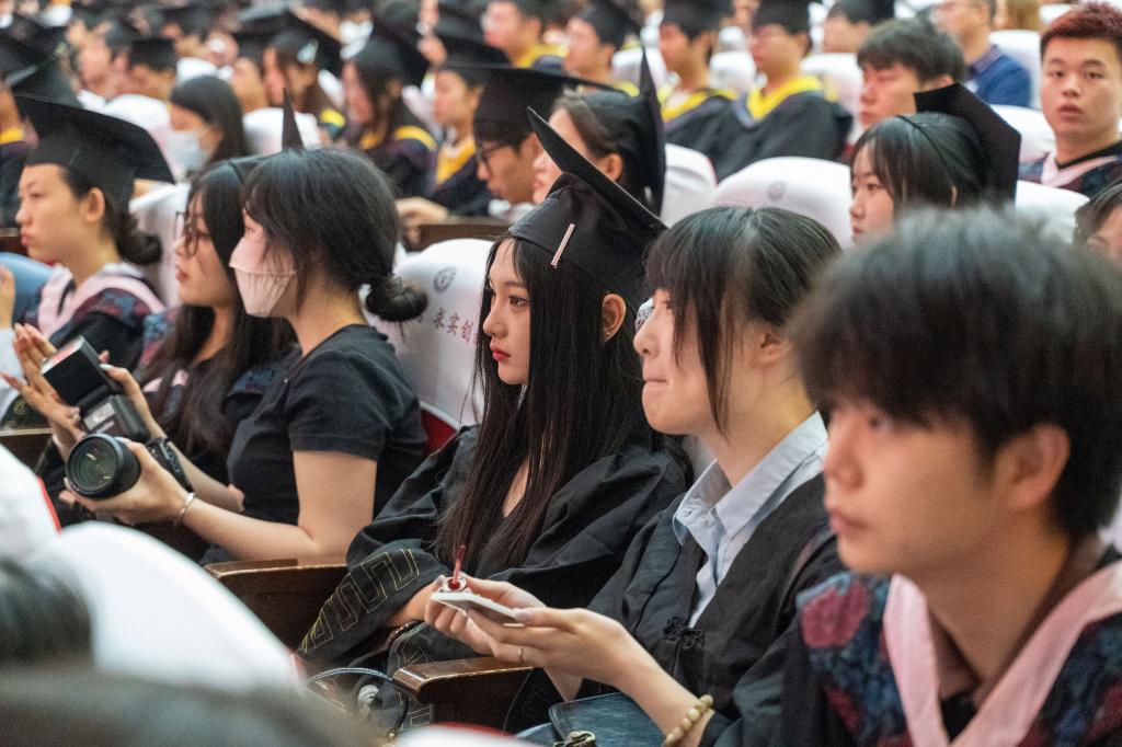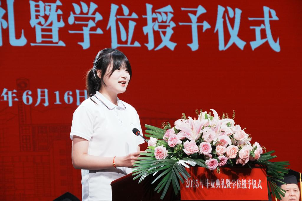 典礼上,医学部唐莺铭作为毕业生代表分享求学感悟,师范学院陈舒薇代表在校生送上祝福,教师代表、智能制造学院教师刘进寄语学子坚守初心。