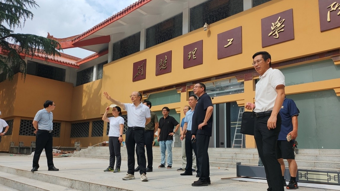 张友兵一行实地察看了校史馆、人文社科研究基地、荆楚科创实验实训中心、艺术学院教学楼、医学部雕塑迁移等项目施工现场,并仔细察看工程质量,认真听取项目负责人关于施工进度、技术难点、安全管理等方面的汇报,详细询问材料供应、人员配置及开学前投入使用的准备情况,对各项目当前推进成效给予肯定,并就解决项目推进中的困难和问题提出指导意见。