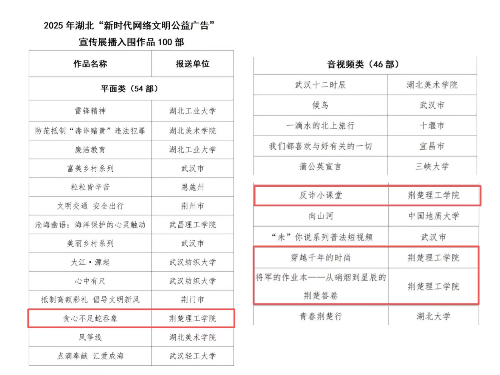 学校高度重视此次征集活动,将其作为提升学生文明素养、展示育人成效的重要契机,统筹校团委、科技处、艺术学院组建师生创作团队。创作中,师生紧扣主题,围绕“网络文明、廉洁新风、社会正能量”等内容,深度融合荆楚文化特色与时代精神,精心打磨出多部兼具思想深度与艺术感染力的优质作品。