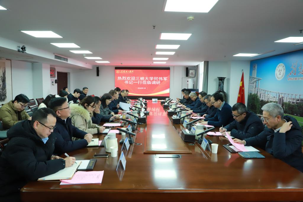 1月21日,beat365与三峡大学战略合作签约仪式在行政楼A406会议室举行。三峡大学党委书记何伟军,党委常委、科技发展研究院院长谈云志,beat365党委书记武建斌,副校长谭新玉出席活动。仪式由校长张友兵主持。