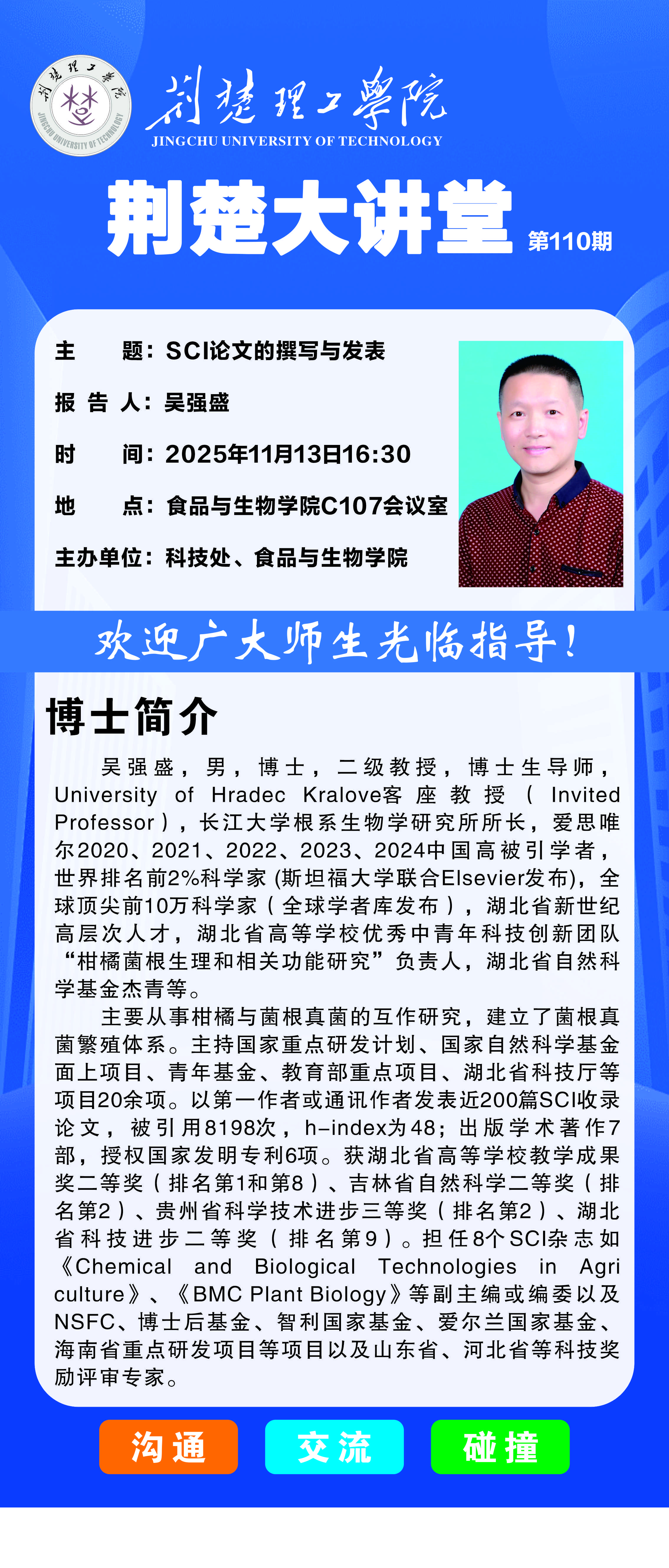 荆楚大讲堂第110期:SCI论文的撰写与发表