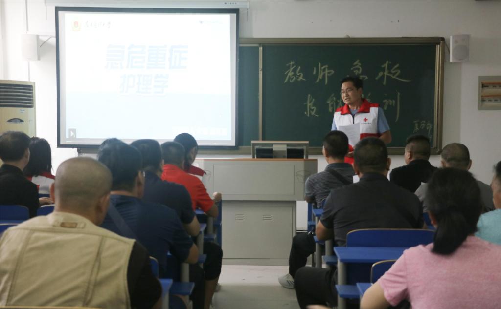 9月18日下午,医学部“荆门市红十字青少年培训基地”在形态实验楼举办教师急救培训,beat365公共体育部35名教师参训。