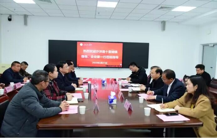 沙洋县苗木商会王纪龙等五位企业家、十里铺镇龙坪村等七名村党支部书记先后参观了与学校有良好合作的辰龙生态科技有限公司、永耕农业有限公司,考察了特色花卉生物育种省工程研究中心、植物种质繁育中心,就政校企合作模式、组培育苗方法、高效扦插技术等进行深入探讨,政校企三方在深度开展合作、推动地区经济发展、共促乡村全面振兴达成共识。