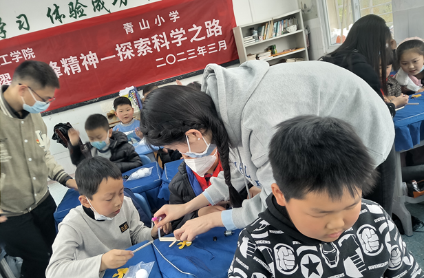 同时,科普团走进课堂,指导学生们做物理小实验,与同学们一起探索科学世界的奥秘。在科技小制作环节,指导老师向同学们介绍了“鲲龙”AG600M灭火飞机这一大国重器,讲述中国制造的飞速发展和巨大成就,并带领低年级同学动手制作“水上飞机”,高年级同学则挑战更有难度的幻灯机制作。“好看、好玩,并且能亲自动手制作作品,收获满满!”同学们纷纷表示。