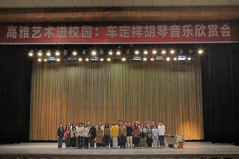 为贯彻落实国务院办公厅《关于全面加强和改进新时代学校美育工作的意见》,抓好五育并举育人工作,提高学生们对高雅艺术的欣赏能力,文学与传媒学院邀请国家一级演奏员车定祥教授在荆楚理工大会堂举办了胡琴音乐欣赏会,场内座无虚席。