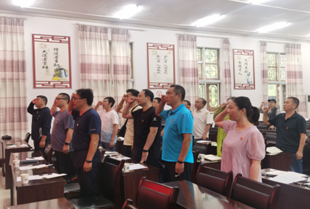 本次主题党日活动共有八项议程:组织全体党员交纳党费、重温入党誓词、集体诵读党章、集中学习、支部书记讲党课、民主议事、民主监督和开展特色实践,其中镇党委书记罗朝远以“奋进新征程,建功新时代”为题,给全体党员上主题党课。