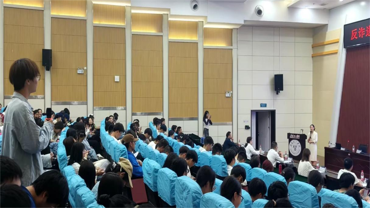 荆门市第十届政协委员王红艳律师以《远离电信诈骗共建和谐校园》为题,为学院师生讲述了电信网络诈骗的含义、常见套路、识别和防范方法,以发生在学校周边、学生身边的案例为素材,采取以案讲法、以案学法、以法论事的方式,深入剖析学生群体最容易受骗的诈骗类型和常用作案手法,并告诫学生不贪图小利,切实做到不听、不信、不转、不随意泄露个人信息,提醒大家主动下载反诈APP,保护好自己的财产以及个人信息安全。活动过程中,现场学生们踊跃提问,王红艳利用专业知识为同学们在生活中遇到的法律问题进行答疑解惑。