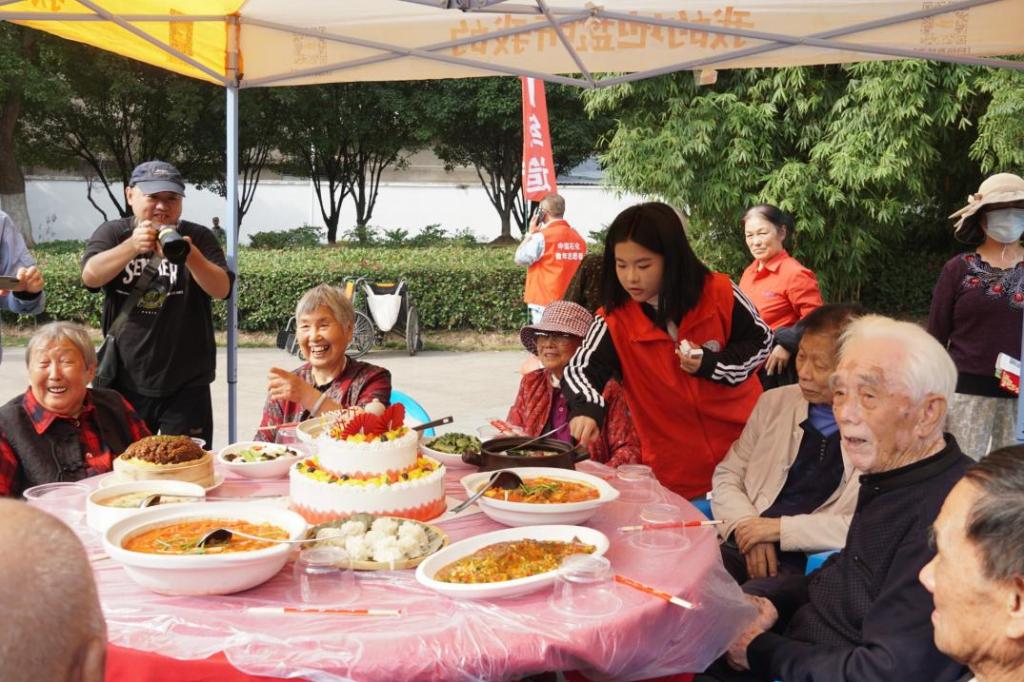 当日上午九点,活动启动仪式在月亮湾社区文化广场拉开了序幕。beat365志愿者按需分配至便民服务区、咨询宣传区、特色展示区等区域岗位,进行引导居民参与活动、维护活动秩序等工作。在百家宴活动中,志愿者们帮助腿脚不便的老人们坐至餐席上,他们相互配合,摆桌、传菜、发放餐具,将居民们精心烹制的美味佳肴一一呈现在活动现场。居民们围着桌子欣赏、品尝着各式菜品,浓浓的邻里情谊和幸福的味道在这一道道菜肴中相互传递。
