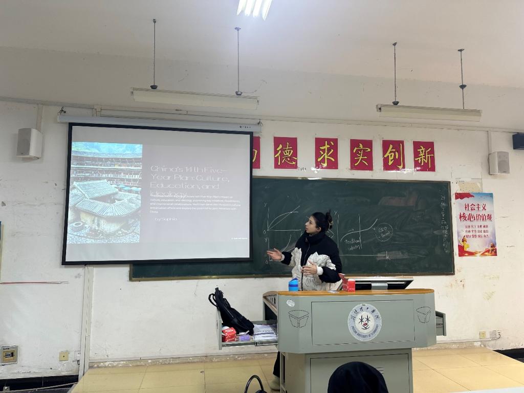 在汇报课上,留学生围绕技术创新、绿色发展、共同富裕等主题进行分享交流。通过对比分析,他们不仅展示了各自国家在相关领域取得的成就、面临的困境与挑战,还结合在中国的留学经历和职业规划,提出了两国未来合作与共同发展的见解与建议。