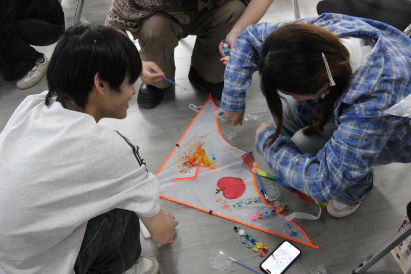 活动现场,同学们开启了心灵治愈与美育体验的双重探索。在手工体验环节,大家挑选自己心仪的风筝样式和颜料,精心组装、绘制风筝。对于艺术学院的学生而言,画笔是他们表达内心世界的有力工具,他们用灵动的笔触,在风筝上绘下色彩斑斓的图案,将学业压力、生活困扰都随着颜料挥洒出去,尽情享受手工创作带来的乐趣。